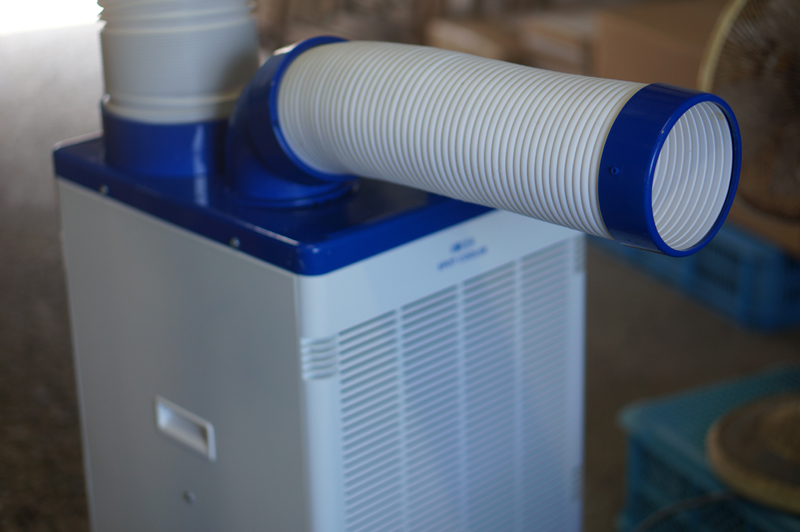 今年は本当に厳しい猛暑です。連日35℃前後。この暑さで倉庫内での作業も大変なのでスポットエアコンを導入しました。冷たい風が当たってあると無いとでは全然違います。もっと早く設置すればよかったです。
