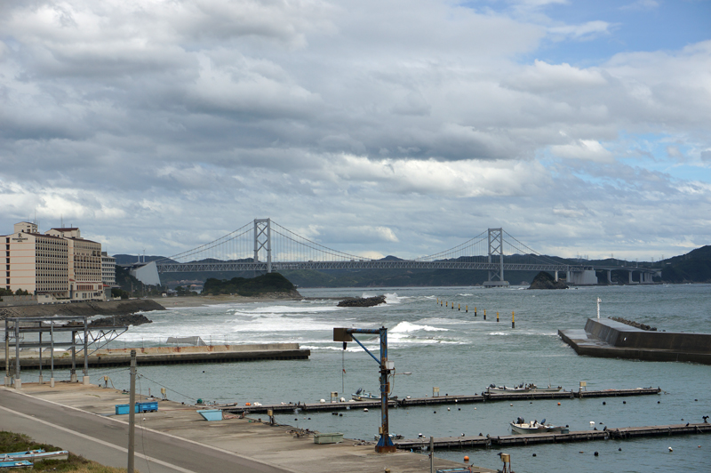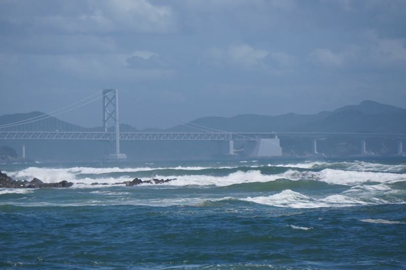 台風20号が今夜から明日朝にかけて四国に上陸する恐れが出ています。高波が鳴門海峡に打ちつけています。波からの潮が広がり辺りが霞んでいます。倉庫や設備、船などは昨日の内に完了しています。非常に危険な進路なので十分な警戒が必要です。