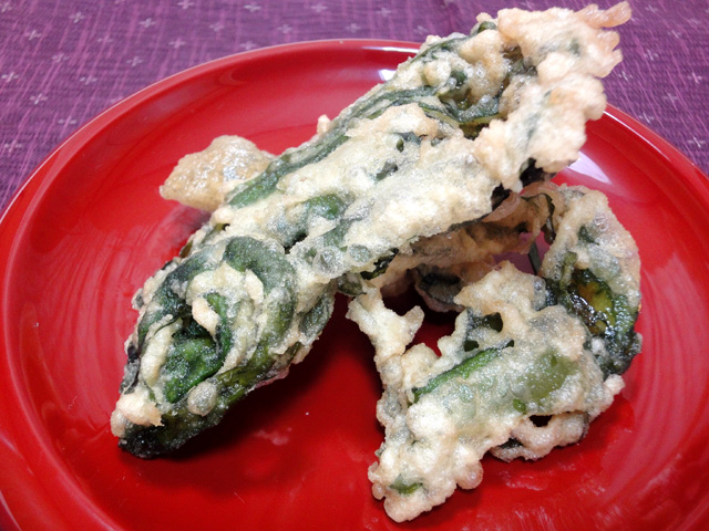 鳴門わかめがパリッと揚がり、磯の風味も広がります。野菜やエビ、イカなど魚介類を混ぜるとかき揚げになります。塩だけでなく、天つゆも良く合います。ぜひお試しください。