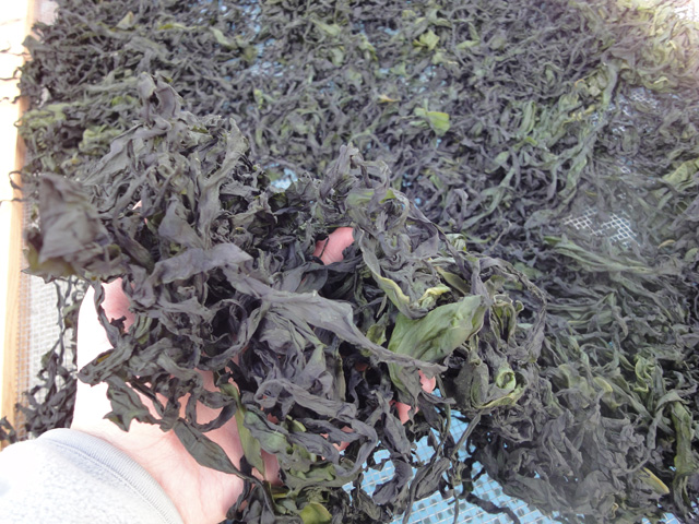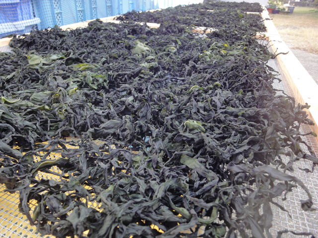 日増しに寒くなり、日和がころころ変わる今日この頃ですが、天気が良い日は乾燥わかめの製造に勤しんでいる毎日です。写真は落葉わかめの天日干しの状態です。ブログを付けている今日は、凄く天気悪いですが・・・。