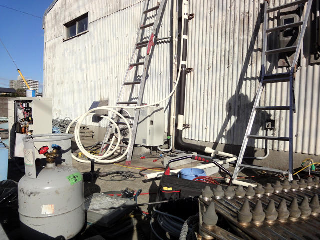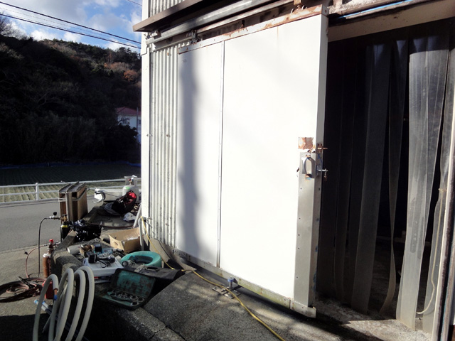 既存の冷蔵庫の冷却機を新しく更新しました。今年は春先に大きい冷蔵庫も新設したりと、冷蔵設備に力を入れました。来春の新物わかめの収穫までに、保冷環境を整えたかったので、これである程度の目処がつきました。