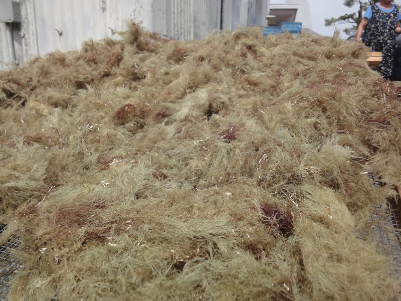 さて、雨が全然降らないので、今が絶好の干し日和と「ところてん草」を外でさらしています。適度な湿度もあるので、ところてん草には絶好のコンディションです。裏返したりして、お日様の恵みで、全体に自然乾燥させていきます。