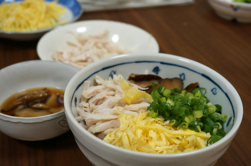鶏飯(けいはん)ってご存知ですか?「とりめし」とは読みません。茶碗に盛ったご飯にほぐした鶏肉と錦糸卵、甘辛く煮た椎茸、刻んだネギをのせて、鶏のスープをかけてお茶漬けっぽくして食べる料理です。この料理は奄美大島の郷土料理なんだそうです。