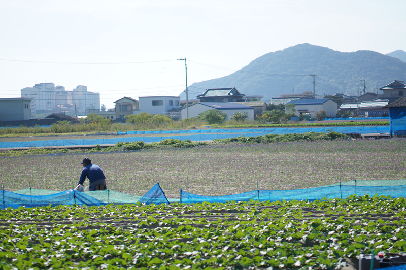 あっちもこっちもらっきょう畑なので小高い自宅辺りから一面眺められます。鳴門海峡からの潮風と鳴門の砂は芋やらっきょうの生育に良いそうです。鳴門わかめや鳴門鯛など魚に限らず鳴門海峡の恵みは本当に有難い事です。