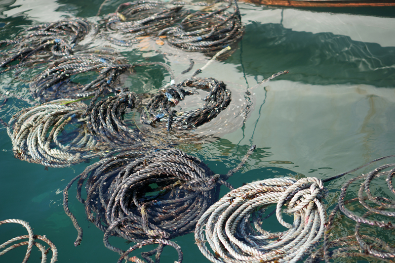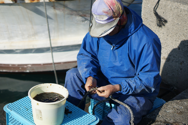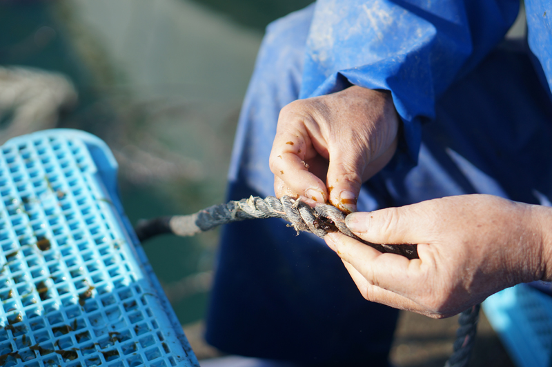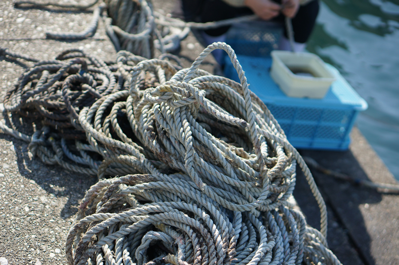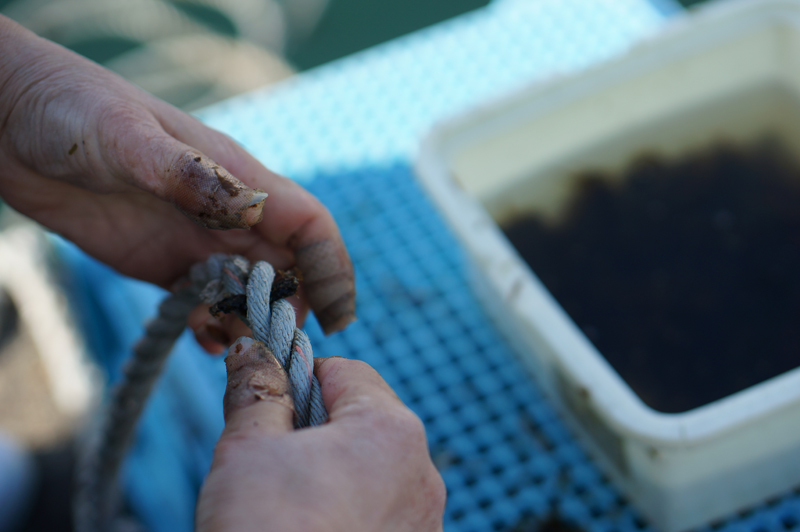 「鳴門わかめの種付け作業中です」