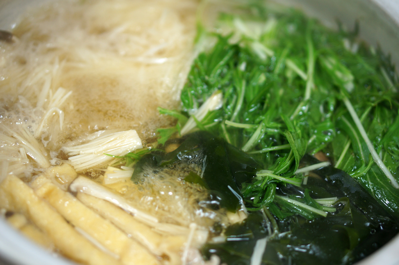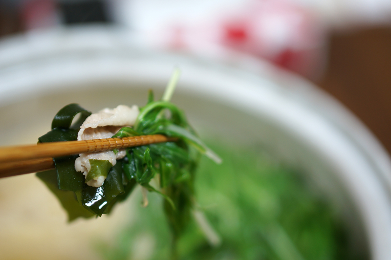 連日、厳しい寒さが続いています。こんなに寒くなると鍋物が食べたくなりますね!鳴門わかめと水菜、豚肉でハリハリ鍋をしました。
