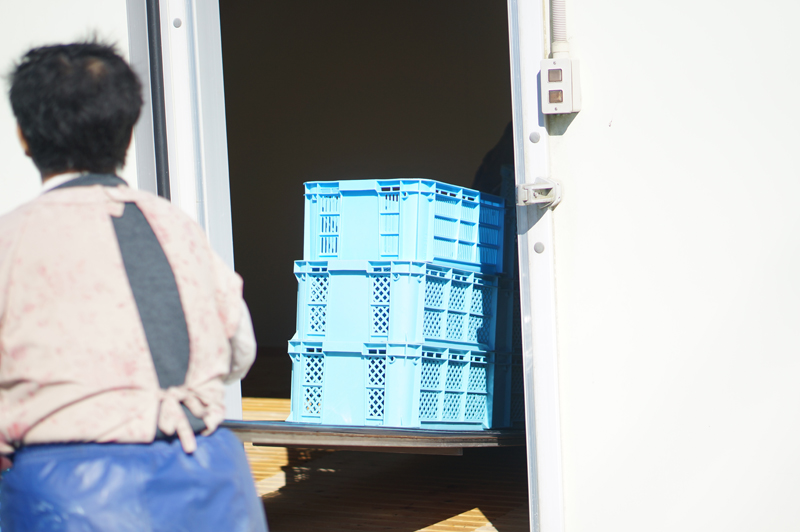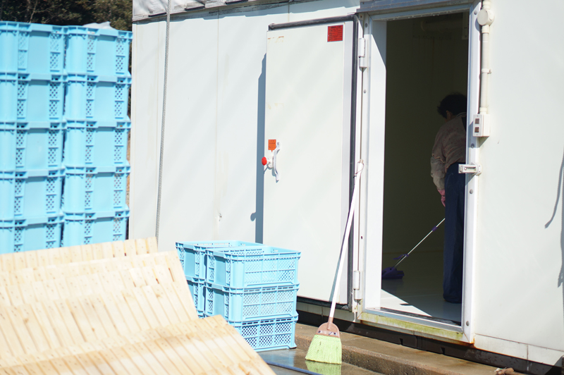 まず中に入っている、コンテナやすのこを全て取り出します。次いで、壁や床に残った塩や汚れをこそぎ落とし乾燥させます。そして、再びコンテナを戻します。