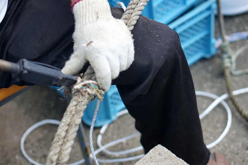 今年も来春に向けて鳴門わかめの種枠の準備を始めました。一本ずつ確認しながら補修していきます。11月の種付けに間に合うよう今から準備です。もう少し暑さが落ち着いてくれれば作業も捗るんですけどねぇ。