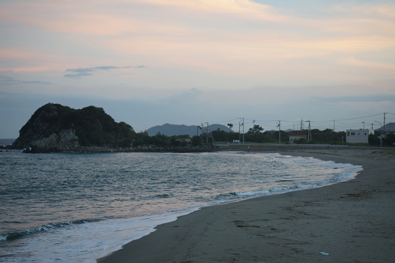 この所雨ばかりで嫌になりそうです。先日夕方、雨が止んだ後に千鳥ヶ浜を散歩しました。夕日と雨雲が混ざって赤と青紫のグラデーションの独特な空が広がっていました。