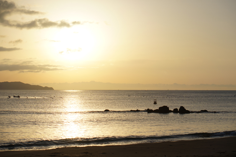 雪に慣れていない地域のため、ある程度溶けるまで待ってから外に出ました。自宅前の千鳥ヶ浜にはまだ雪が残っていました。朝なら真っ白だったでしょう。