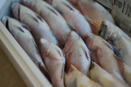 今日の釣果は鳴門鯛が主に釣れました。30~60cmの良型がメインでした。漁から戻ってすぐに出荷作業です。皆さんに喜んで頂ければと願うばかりです。
