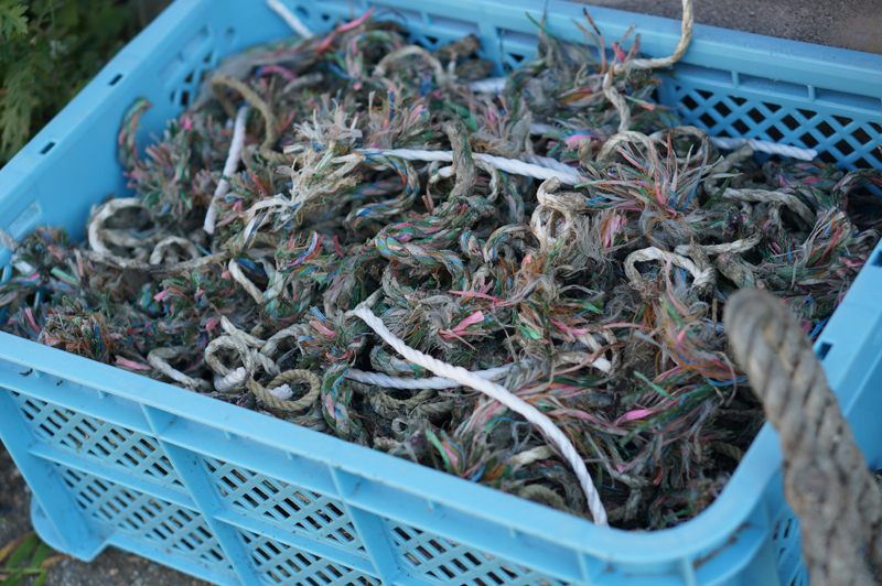 先日から始めたわかめの枠作り。今日もせっせと作りました。この前までは天気が悪かったので倉庫でしたが、今日は外で作業をしました。こんなに晴れていても週半ばにはまた雨が降るようです。晴れが続かないので乾燥わかめなどの仕上げも時間がかかってしまいます。今年は天候が急変する事が多いです。