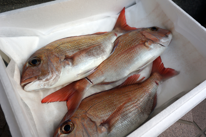 漁から帰ってきました。鳴門鯛、ハマチ、アコウ、キチヌ、ヘダイ等を釣りました。早速、活き締めをしてから、お客様へ出荷しました。釣りたての魚は色の鮮やかさと身の張りが違いますね!秋が脂がのり旬となる鳴門鯛は身の付きが良く、色鮮やかに赤く輝いていました!これからの時期、鳴門鯛がオススメです!