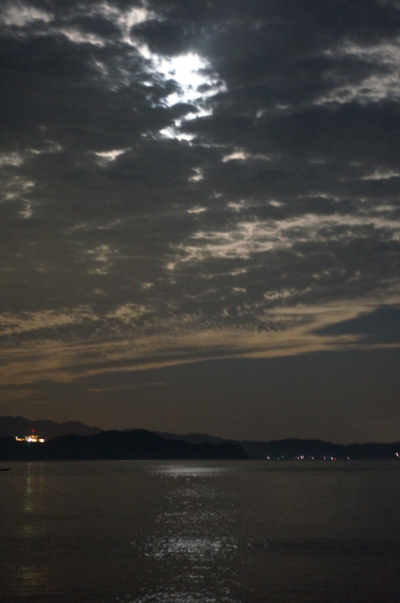 昨日、一昨日と月が話題となったので夕食後、月を撮ってきました。昨日は月が一年で一番大きくなるとの事だったのですが、雲がかかり待てど暮らせど一向に晴れる事はありませんでした。海面は月明かりで照らされているのに…。千鳥ヶ浜と大鳴門橋も合わせて撮りました。夜景の撮影は難しいですね。でも、空気が乾き潮風が心地よかったです。