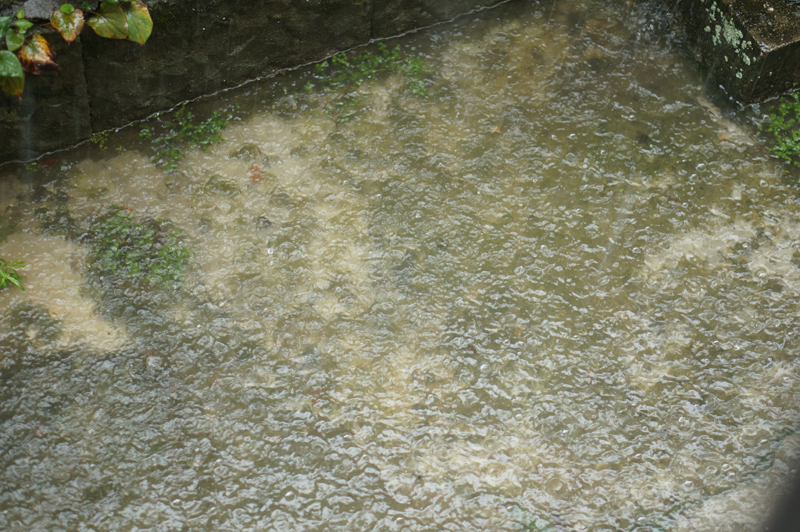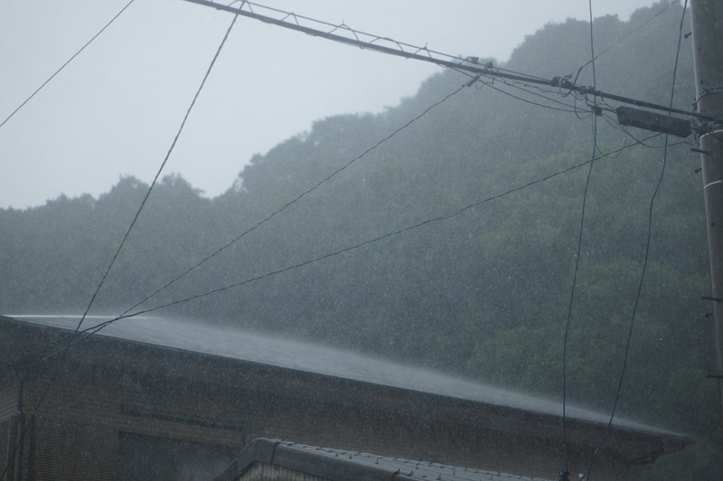 辺りが急に暗くなり、雷を伴う激しいゲリラ豪雨が襲っています。雨音が強くて辺りの音がよく聞こえません。自宅裏は地が低いのですが、激しい雨で水が溜まっています。最近は大気が不安定なので、くれぐれもお気を付けください。さすがに早く止んで欲しいです。