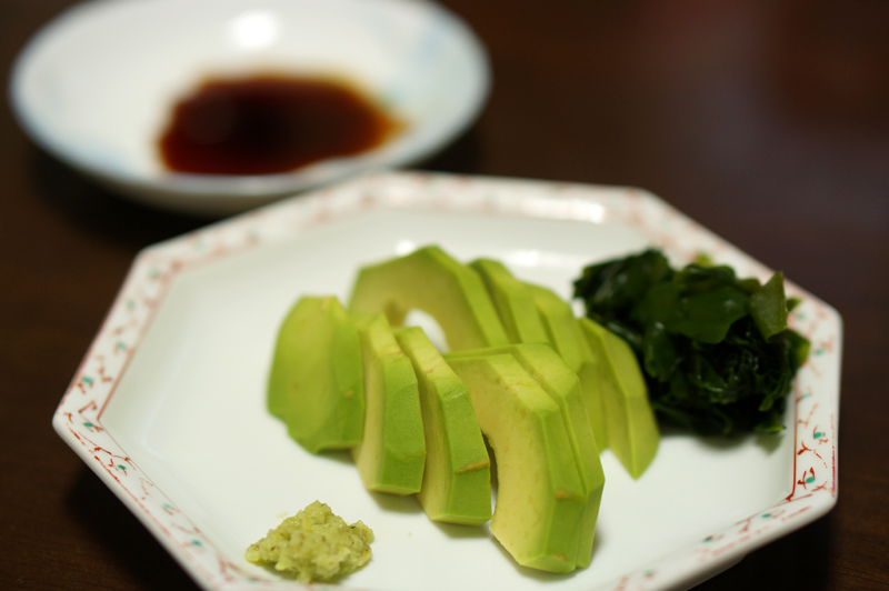 久しぶりにアボカドを入手。皮と種を取り除いて簡単に切ります。塩抜きした塩蔵生わかめを添えてお刺身で食べました。わさび醤油にアボカドが意外と合います。その後、わかめを食べるとサッパリします。ビールのあてにいいですね。ハムで巻いても美味しいと思うので、残ったアボカドで試してみます。