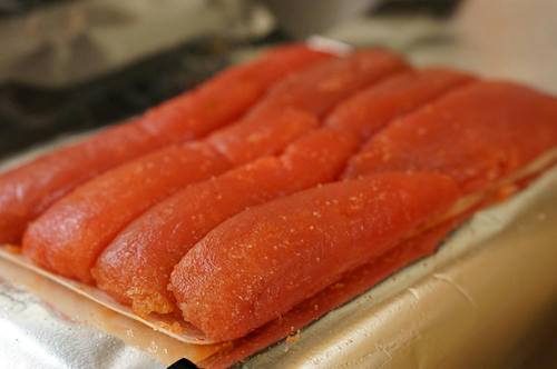 先日、福岡の明太子、長崎のカステラ、喜界島産の黒糖など九州の特産品を沢山頂きました!どれもこれも美味しくて食べ過ぎてしまいます。明太子は炊き立てごはんにのせると絶品!たまたま酢飯があったので、明太子を軍艦巻きのようにしてみましたが、これも凄く美味しかったです。辛さも控えめで食べやすいです。本当にご馳走様でした。