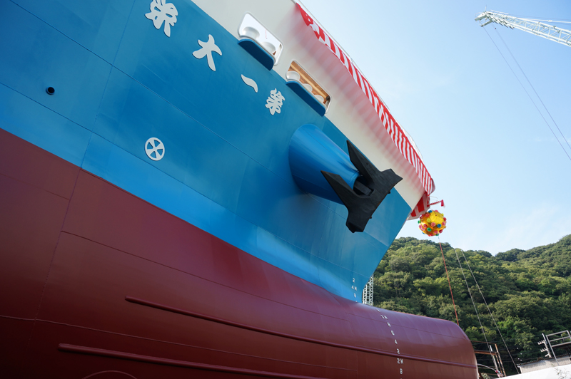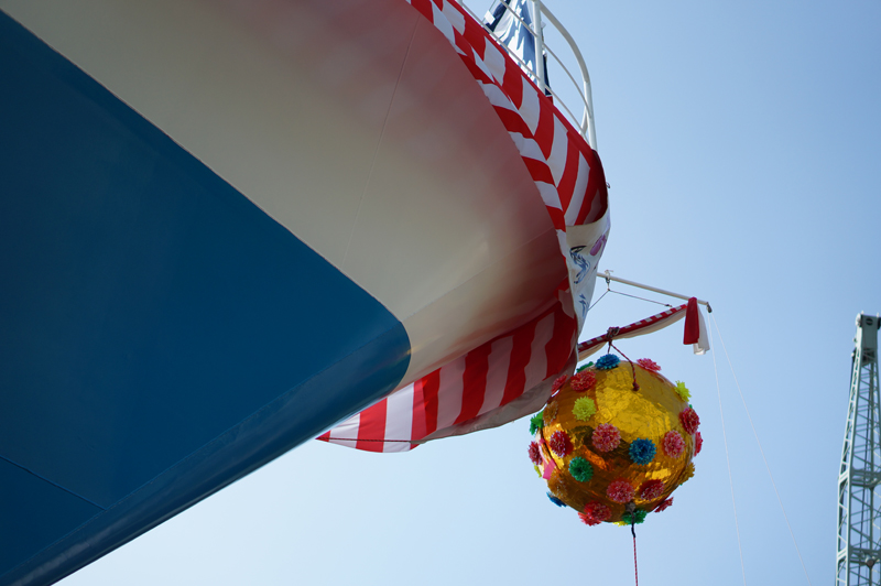 肝心の今回の新造船は、結構大きかったです。写真に収まりきらないので、だいぶ引いて広角側でパシャリ。人も多かったので撮影は意外と気を使いました。