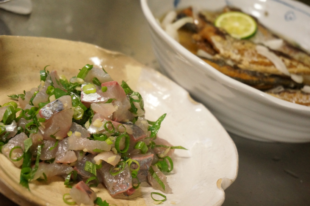 「好物のマアジをタタキと南蛮漬けにして楽しみました」