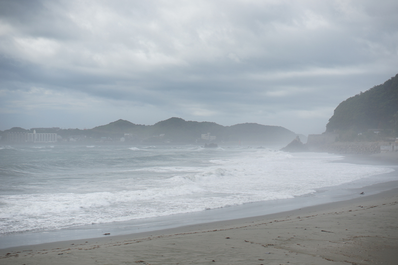深夜から朝方にかけて鳴門は台風並みの強風と大雨が降りました。海峡からの強風で道路や辺り一面が砂だらけです。朝になると雨は小降りになりましたが、沖は白波が立っていました。